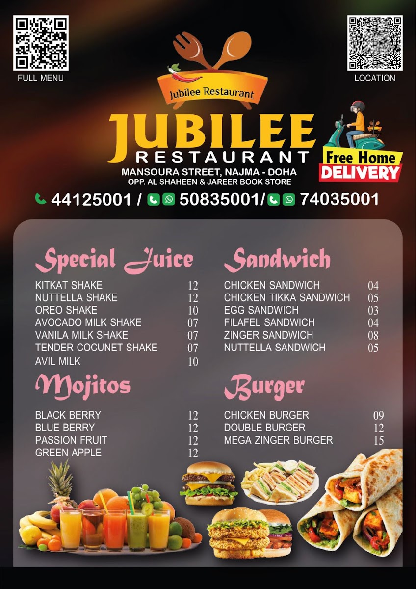 The menu at Jubilee Restaurant in Doha offers a wide range of flavorful dishes that cater to diverse tastes, with an emphasis on grilled meats, rich curries, and traditional Indian delicacies. Among the standout options is the Chicken BBQ with Butter Naan, a combination of succulent grilled chicken paired with soft, buttery naan, making it a comforting choice for any meal. For those seeking a more filling option, the Chicken BBQ with Rice provides a hearty portion of marinated chicken served with aromatic basmati rice, a perfect balance of flavors.